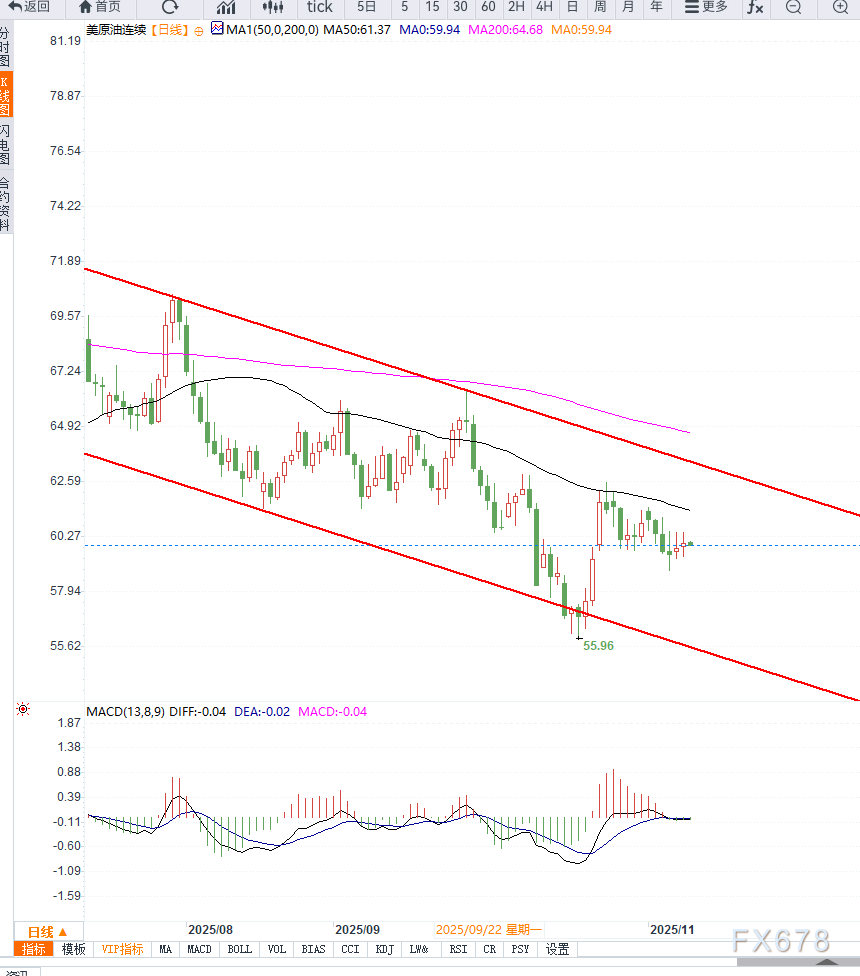 如果WTI能突破60.5—61美元区域,上方目标将指向62.3美元的压力带;相反,一旦跌破60美元整数关口,油价可能在58.5美 寻找下一支撑。