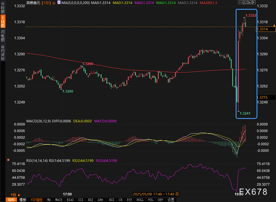 英镑兑美元的走势凸显了国内政策信号与外部因素的博弈。公布前,英镑兑美元受美元强势和关税不确定性压制,从4月28日三年高点1.3440回落至1.3300附近。鹰派投票分歧为英镑提供了短暂提振,市场将其解读为对激进宽松的谨慎态度。交易员下调英国央行降息押注,预计6月份降息概率为20%。