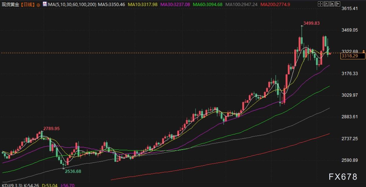 包括指标标普 500 指数在内的 华尔街主要股指受到市场对贸易协议乐观情绪的提振。随着美元上涨,金价下跌。现货金下跌1.74%,报每盎司3305.76美元。