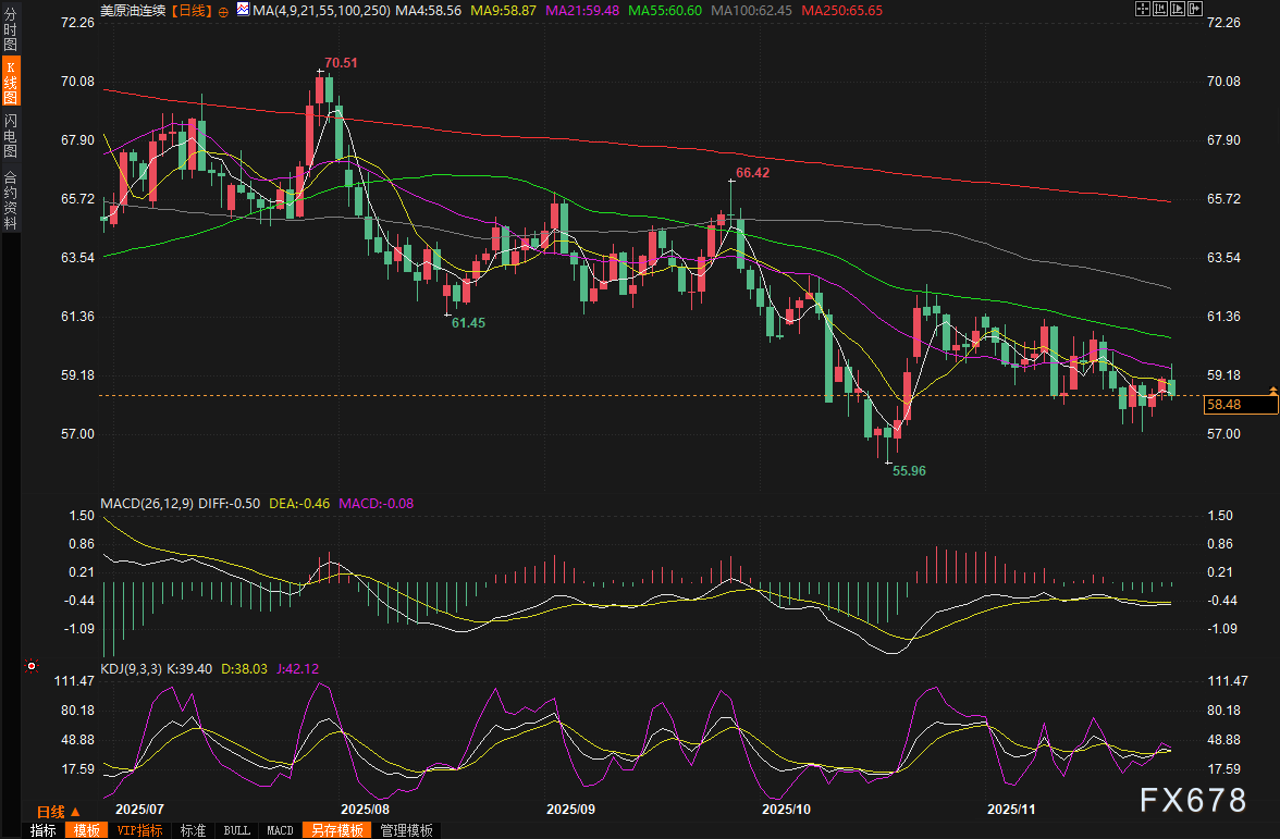 此外,美国对俄罗斯石油巨头俄油和卢克石油的制裁正式生效,虽然短期内市场焦点转向谈判,但这种摩擦通常会支撑价格上行。俄罗斯11月石油和天然气收入预计同比锐减35%,降至约65.9亿美元,主要因油价低迷和卢布升值所致。欧洲理事会主席科斯塔则重申欧盟对乌克兰的坚定支持,这进一步凸显了谈判的复杂性和潜在风险。