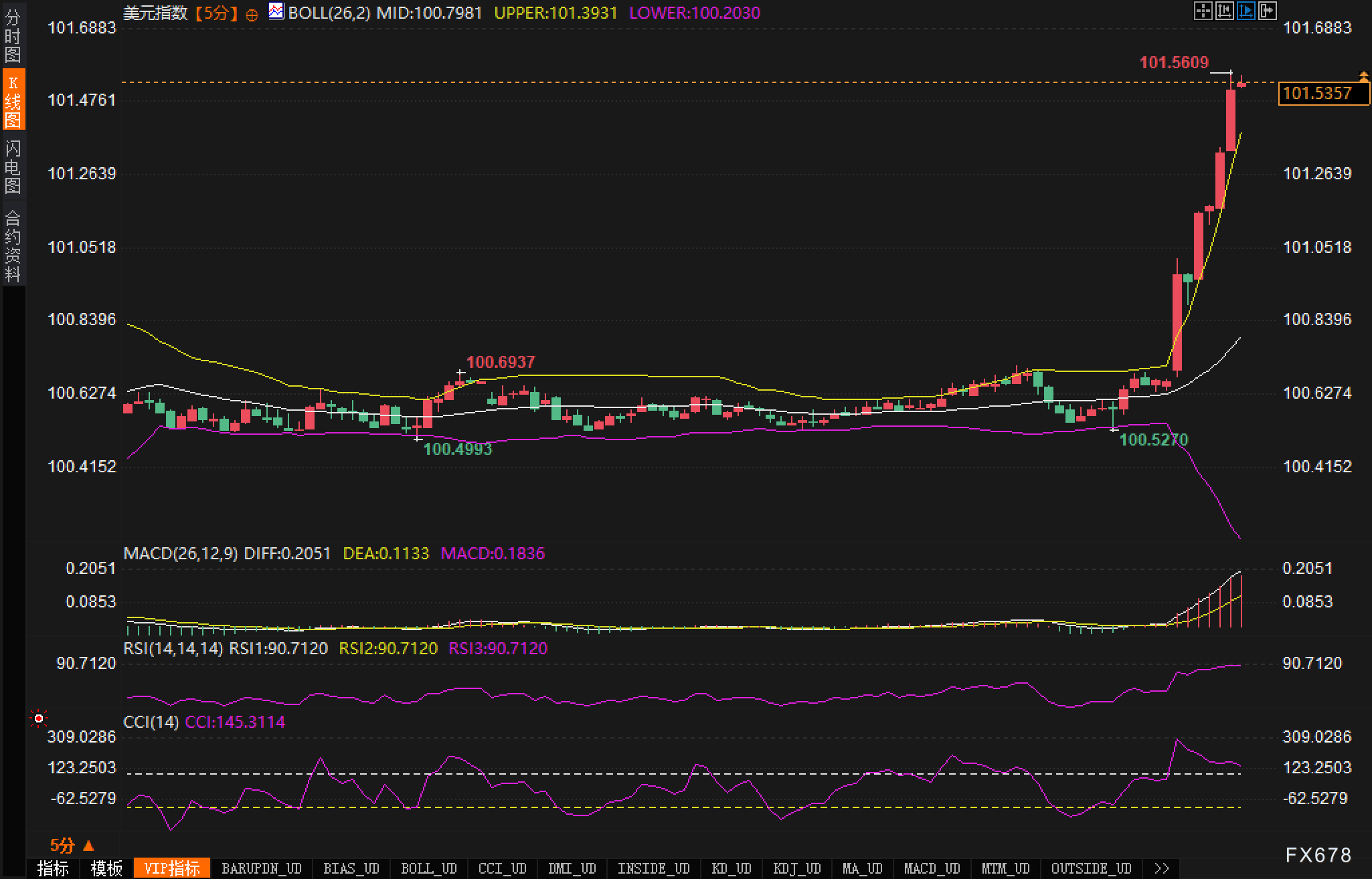 从市场反应来看,声明发布后,各类金融资产出现了显著波动。首先,美元指数在消息发布后迅速上涨,短短几分钟内上涨了0.62%,接近101.00关口。这一涨幅反映了市场对中美贸易关系缓解的乐观反应,投资者的风险偏好显著回升,市场对全球经济增长前景的预期有所改善。美元的强势表现,除了受到贸易政策变化的推动外,也与全球风险情绪的转暖密切相关。
