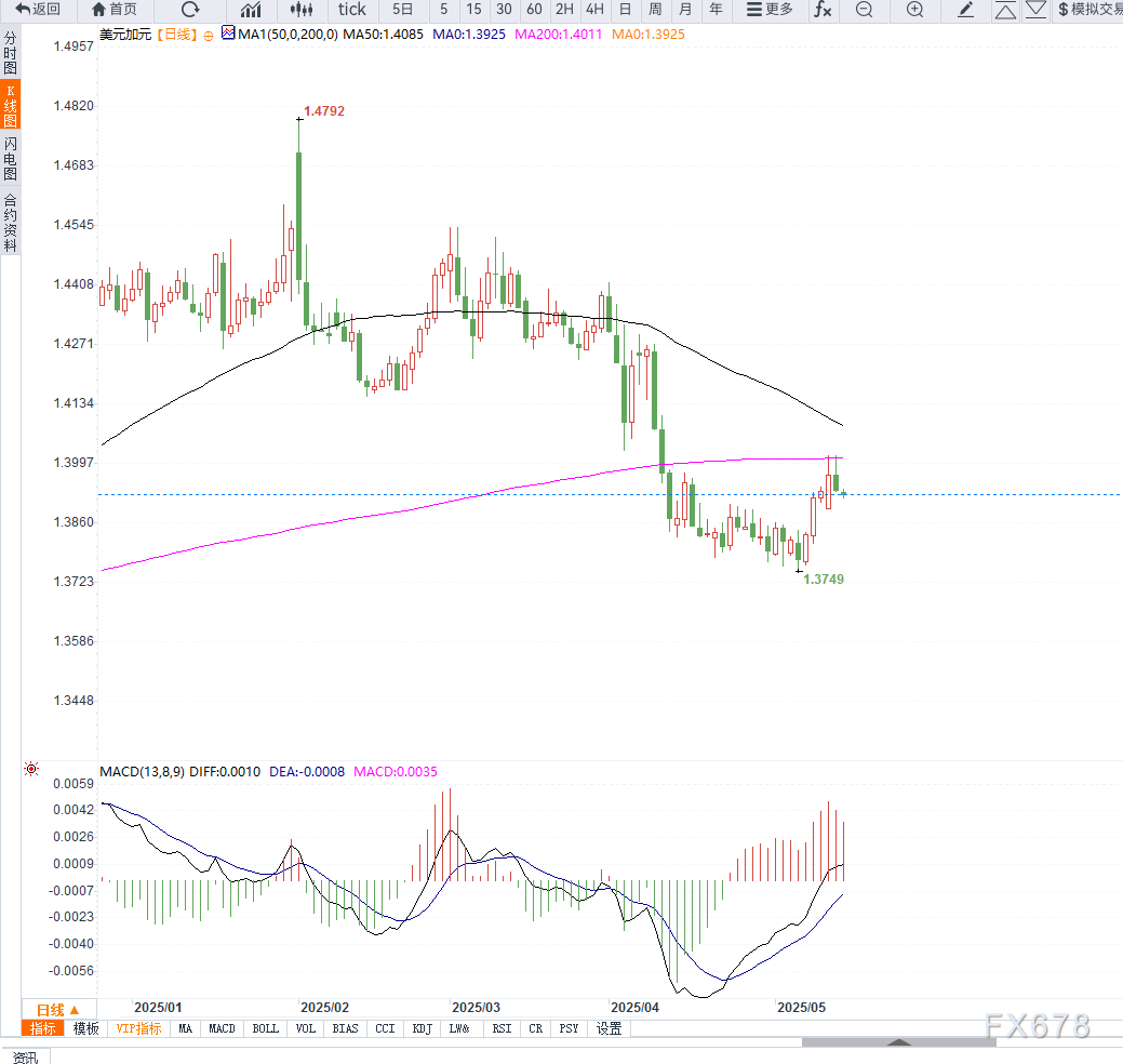 当前美元/加元在1.3930附近横盘整理,连续两日承压。若跌破1.3900整数关口,将测试1.3860及1.3825(斐波那契38.2%回撤位)区域。反之,若反弹突破1.3965,则可能上探1.4000及1.4040前高。