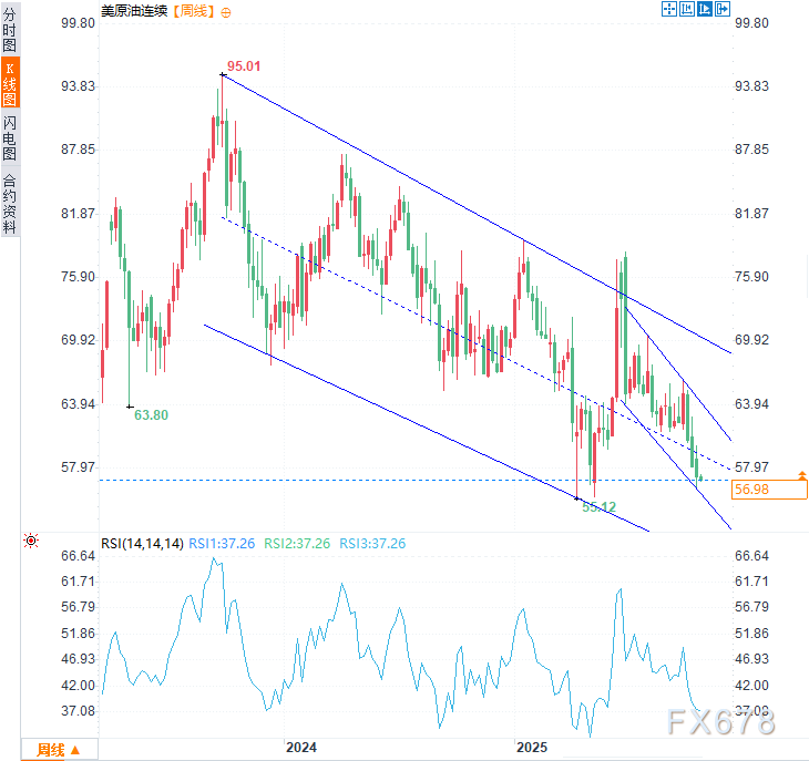 周一(10月20日)亚市时段,美原油连续(WTI)持震荡走低的趋势,跌幅约0.31%,逼近2025年低点55.12美元/桶。疲软的增长预期以及中欧两国持续推进的能源转型,正在抑制原油的整体需求前景,而特朗普关税紧张局势更是令这一局面雪上加霜。